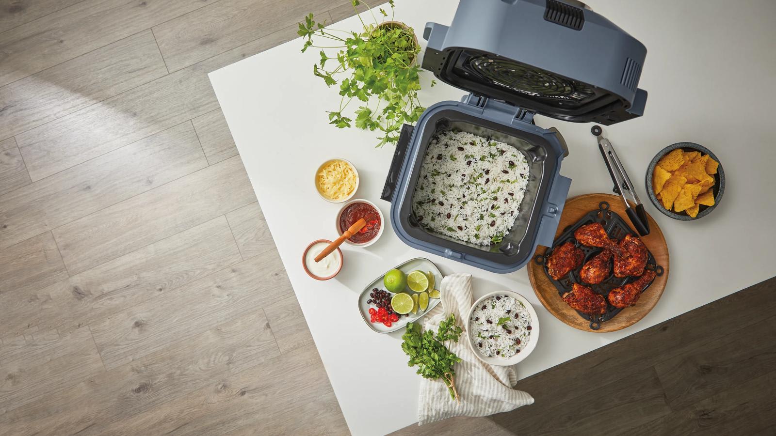 Poznaj Ninja Speedi – kompaktowy multicooker 12-w-1, który zastępuje wiele urządzeń, w tym frytkownicę beztłuszczową, wolnowar i więcej. Idealny dla małych gospodarstw domowych – do szybkich posiłków w tygodniu lub gotowania większych porcji. Teraz w stylowej edycji Cyber Space wraz z fartuchem i silikonowymi szczypcami.